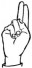 На ћирилици написано ЛАНА ГАГОВИЋ састоји се из 11 слова [?]. Исписано ћириличном једноручном азбуком за глувонеме: